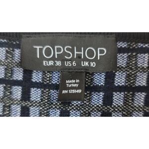 TopShop Black Blue Plaid Flippy Skater Dress 6 A Line Fit & Flare Short Sleeves