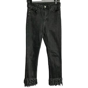 TopShop Black Mid Rise Jeans Fringe Bottoms Size 28