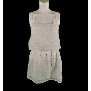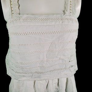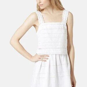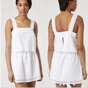 TopShop Boho Eyelet Lace Trim Overly Crochet Cotton Sundress White Sz 6