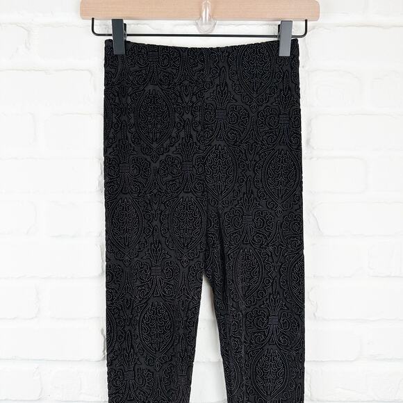 TopShop Burn Out Velvet Black Leggings Sheer Paisley Pattern Size 0