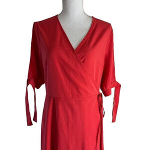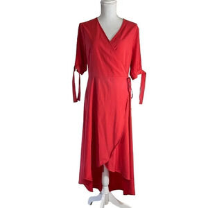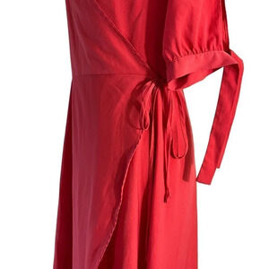 TopShop Coral High Low Wrap Dress Size 10 V Neck Short Sleeves Solid Pattern