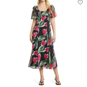 TopShop Floral Flutter Sleeve Dress-NWT Size 0 Black and Red
