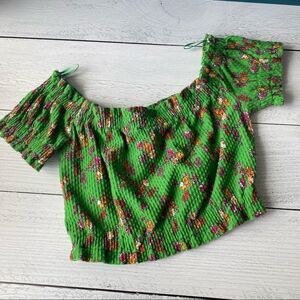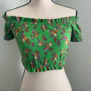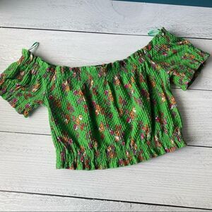 Top Shop Green Pink Orange Florals Off Shoulder Crop Top Sz 2