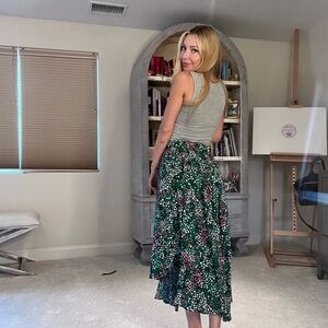New Arrival TopShop Green Painted Spot Pleat Midi Skirt available Last Size 4US