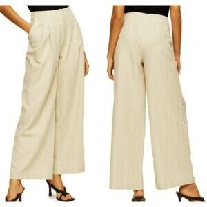 TopShop Herringbone Lightweight Wide Leg High Waist Trousers Sz 10 Oatmeal NWT