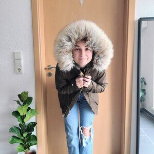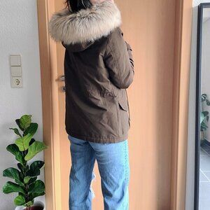 TopShop Olive Green Faux Fur Hooded Lined Anorak Peacoat Jacket