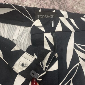 Women's Top Shop Leaf Print Black White Dress Pants Trousers Sz 2