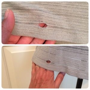 GUC – only flaw is a small hole on the bottom front (see pics); easily stitched. Otherwise, very good condition; no stains or snags. Very light knit, slightly sheer. Racerback style with a keyhole button closure in the back. Perfect to layer under a blazer or on its own.