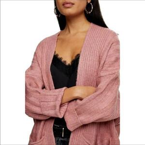 TopShop Long Cardigan Sweater Rose Pink Knit NWT