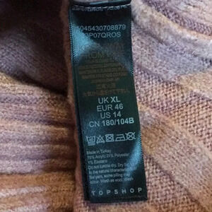 TopShop brand long cardigan sweater open front with pockets, plus size 14