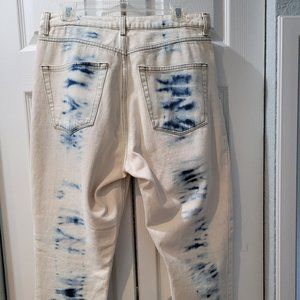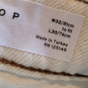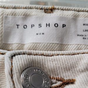 TopShop Mom Jean's in great shape. Worn 2 or 3 times. I'm more of a skinny jeans girl. These fit like a size 10 .Clean, smoke free home.