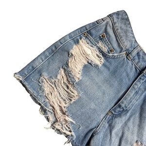 In good condition •TopShop •Moto •Mom Style •Distressed •Stained Pink •denim shorts •High Waist
