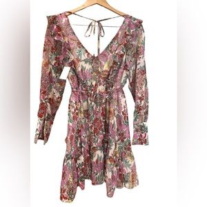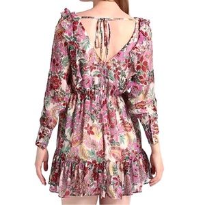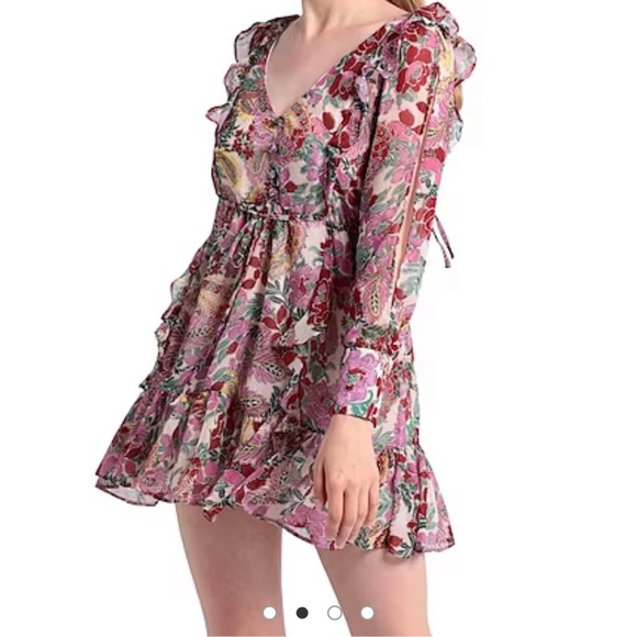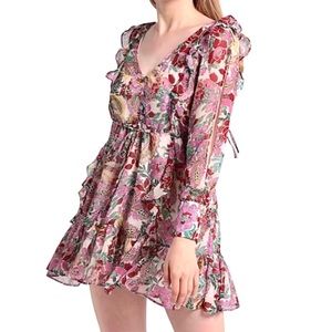 TopShop Ruffle Floral Mini Dress Lightweight Crepe Chiffon Button Bodice…