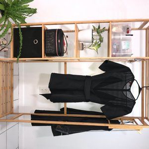 Kate Moss and Topshop 2014 ( i believe?) US size 6 but fits like a 4 imo. This classy romper jumpsuit has a satin finish body and sleeves, and a sheer plunging mesh neckline. Very well constructed garment that can look amazing for nights out, a date, a dinner party, drinks, dressed up or more laid back. Very comfortable and lightweight yet supportive and well made. It's in great condition. Talking about it makes me almost not want to sell it haha... jk ;) Feel free to ask any questions!