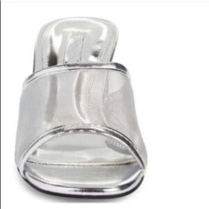 A transparent block heel intensifies the modern attitude of this outfit-making sandal.