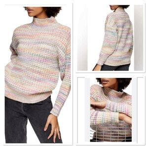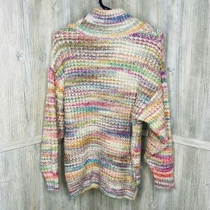 Pastel Colors Waffle Stitch Turtle Neck Chunky Knit Sweater. Approx Measurements Pit to Pit 21”, Length from Shoulder to Bottom 28”. Oversized Size 4-6. New with Tags 🚭