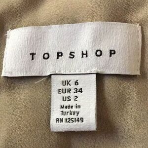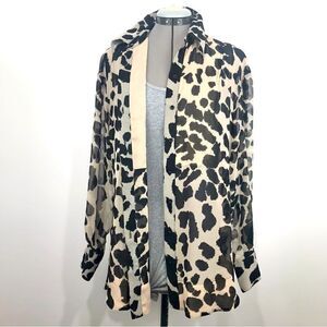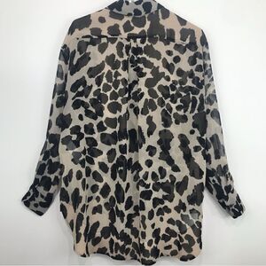 TopShop Tan Black Animal Print Semi Sheer Long Sleeve Flowy Button Up Tunic Blouse
