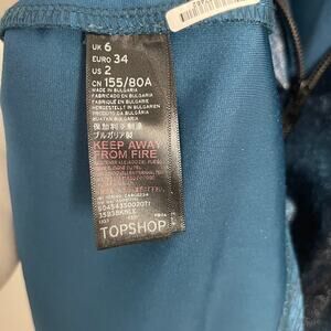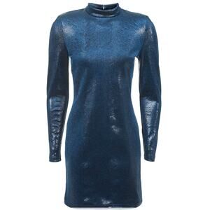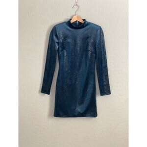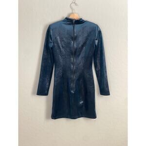 TopShop Teal Mock Neck Wet Look Velvet Long Sleeve Dress - 2