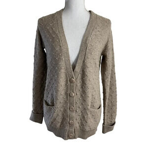 TopShop Textured Cardigan Sweater Size 4 Oatmeal Beige Buttons Long Sleeves