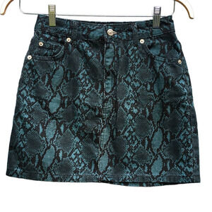 TopShop Women's Green Black Snake Print Mini Skirt Size 2