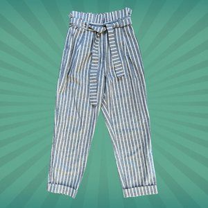 Women's TopShop blue/white stripe paperbag high wasted pants 4 with ruffle detail and removable belt.