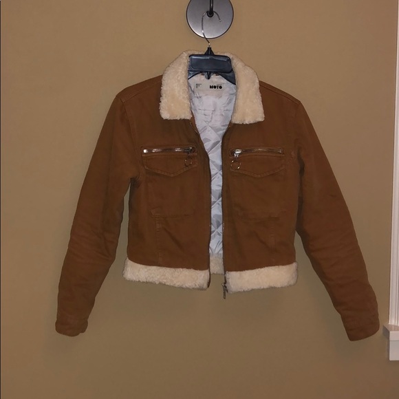 TopShop jacket with fur trim. Size 6. Fake zipper pockets with real flap pockets. Great condition, no stains, tears and only worn a couple times.