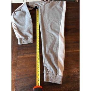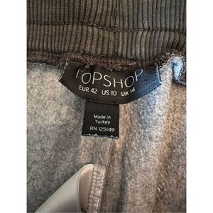TopShop side band sweatpants size 10. Gray sweatpants with a large banded side and contrasting waistband. Tie waist. Ribbed cuffs. Super comfy. Great used condition.