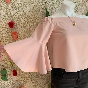 TopShop Blush Off Shoulder Bell Sleeve Crop