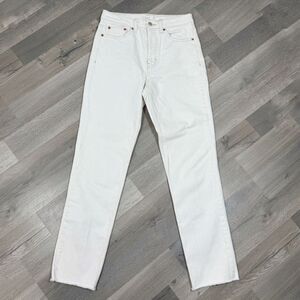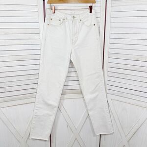 TopShop High Rise Raw Hem Cropped Straight Leg Jeans White Ivory 28 Tall