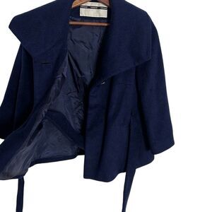 TopShop Slouchy Wool Mohair Blend Wrap Tie Waist Coat Jacket Navy Blue Size 6