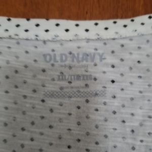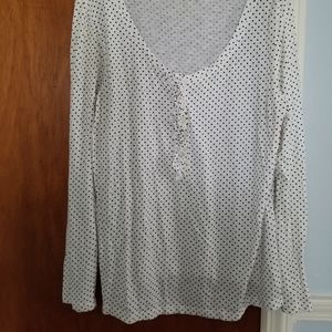 Like new-never worn. Long sleeve white tee with black diamonds pattern. Has ruffle down the chest with several working buttons.