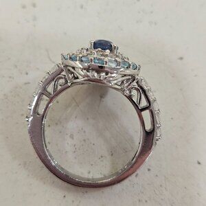 Natural topaz ring. London blue and sky blue topaz stones. Sterling silver stamped 925. Size 6.
