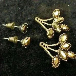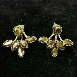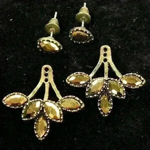 Topaz-type Stone Leaf Earrings w/Detachable Post and Adjustable Drop