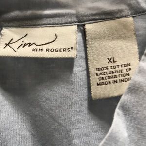 @glenda1632 thanks for your interest. This shirt is a soft blue/gray. Very attractive. Let me know if you would like to bundle it with your other purchase.