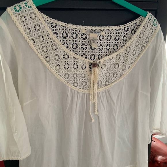 Beautiful Euler/embroidered top/blouse. With sleeves to your elbows. Scoop neck, and cute bead as a toe stopper. Runs true to size. Worn few times.