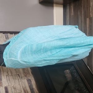 A beautiful top that is very versatile as well as comfortable. Can be worn as a swimming suit cover up or a blouse. Very gently used and no stains, holes, or tears. All offers considered and discount shipping is available.