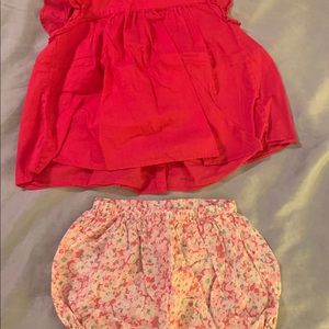 Beautiful floral bloomers with button down hot pink top. Material is very light and cool.