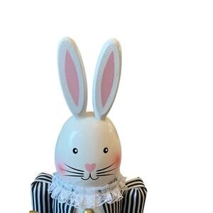Celebrate the Easter Holiday season with the charming 14” Easter Bunny Rabbit Wooden Nutcracker from Tophat & Tail. Expertly crafted to capture the spirit of both Easter and Spring, this medium-sized nutcracker features a delightful white, black, and gold color scheme, complete with an attached top hat and tail that add a whimsical touch to this classic decoration. The nutcracker is made from mixed materials, including wood, and is embellished with decorative accents that showcase its holiday charm. Whether displayed on a mantel, shelf, or as part of a festive centerpiece, this single piece brings the joy of the Easter collection right into your home, without the need for customization or the worry of vintage wear.