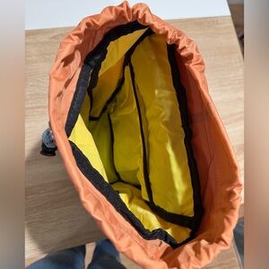 Drawstring cinch closure access to main compartment
