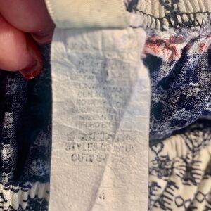 Red, White, and Navy Blue in a a patchwork design of 3 different patterns. Fun Boho Vibe with Southwestern flair!