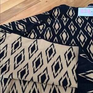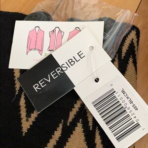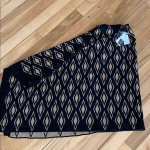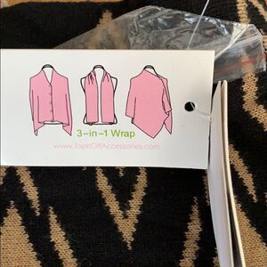 Top it off black and camel diamond print reverse pattern 3-in-1knit wrap. One edge with button closure. See pic for style options. New, with tags. Nonsmoking home.