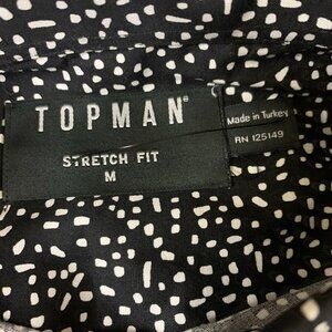 Topman Black White Dot Button Up Shirt Medium Stretch Fit Mod Print Party