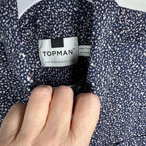 This Topman Short Sleeve Button Down Shirt is used and in EUC. It is mostly blue with white, pink and grey pattern - see pictures. Men’s size medium.
