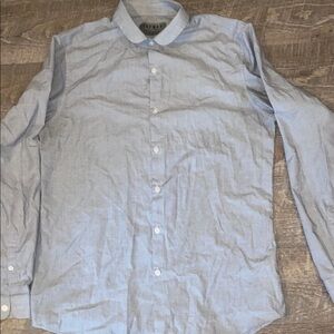 This Topman dress shirt in a sophisticated blue hue is perfect for formal occasions. Crafted with attention to detail, it features a pointed collar and full-length sleeves for a timeless look. The high-quality fabric ensures comfort and a polished appearance.