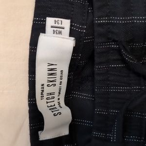 Pinstripe Topman drawstring pants in navy 34x34. Extremely comfortable! Can be dressed up or down.