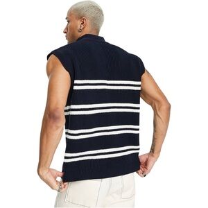 Topman Knitted Breton Stripe Tank Top in navy and white