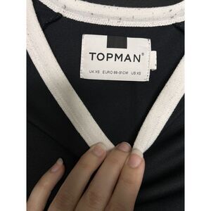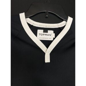 Topman Men's Black Sporty V-Neck with White Collar Classic T-Shirt