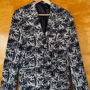 Topman Mens Black and White Bamboo Pattern Blazer
