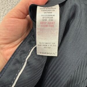 Topman Mens Dress Pants 30x28 Navy Blue Check Plaid Slim Fit Trousers Work Casual