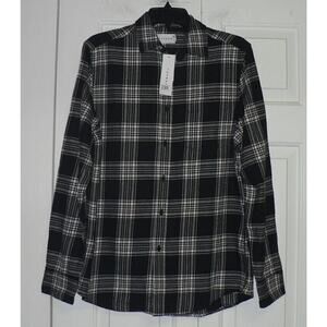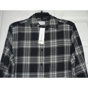 Topman Men's Slim Fit Check Button Up Shirt Black & White Xsmall MSRP $45